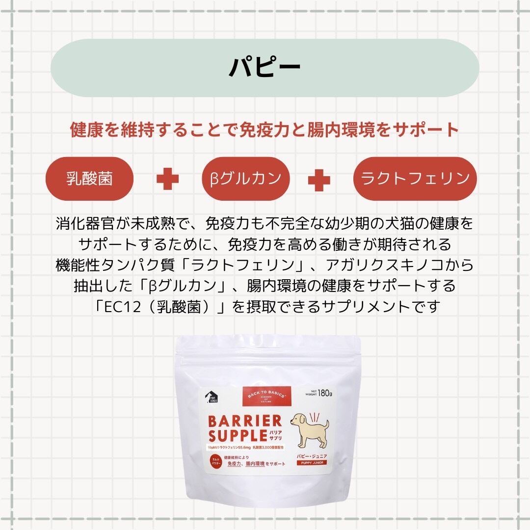 幼犬の成長と健康維持に配慮した健康補助食品です。